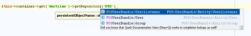 thx for the new Symfony2InterfacesUtil. now Repository classes resolved corrent on interfaces |
