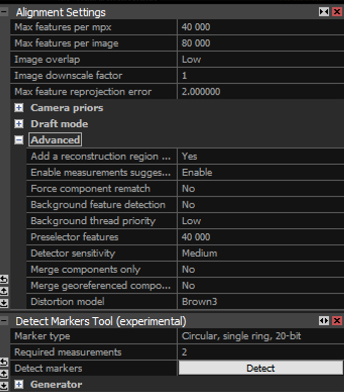 Alignment: Align > Detect Markers > Align 2 times (align and wait and then align again. this reduces errors)