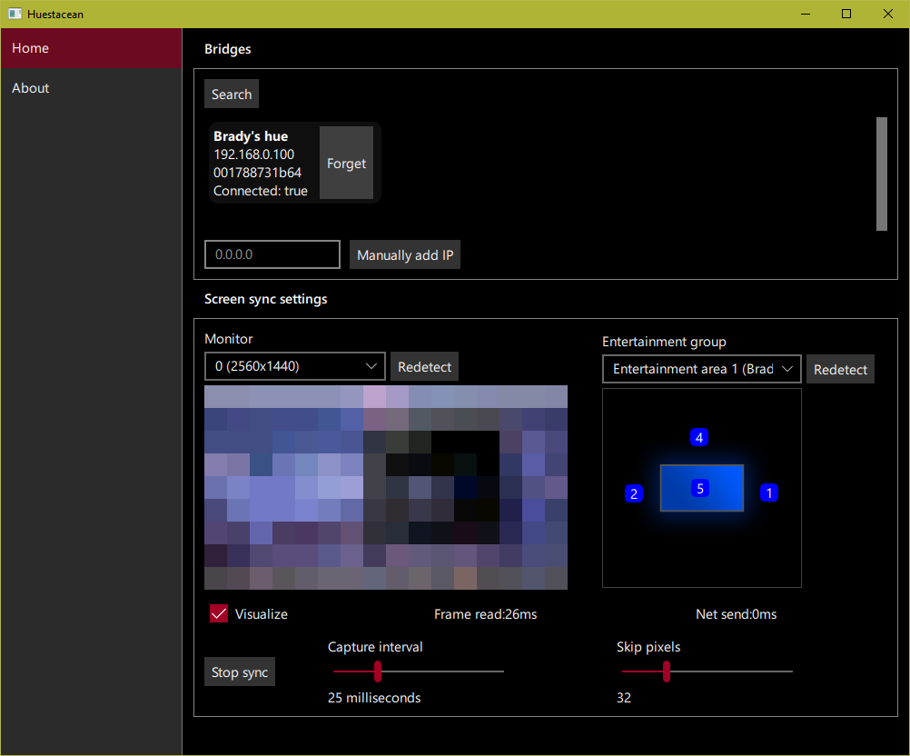 Philips Hue screen syncing app for Desktop. Uses Philips' new Entertainment API to sync the user's screen with their lights with very low latency.
