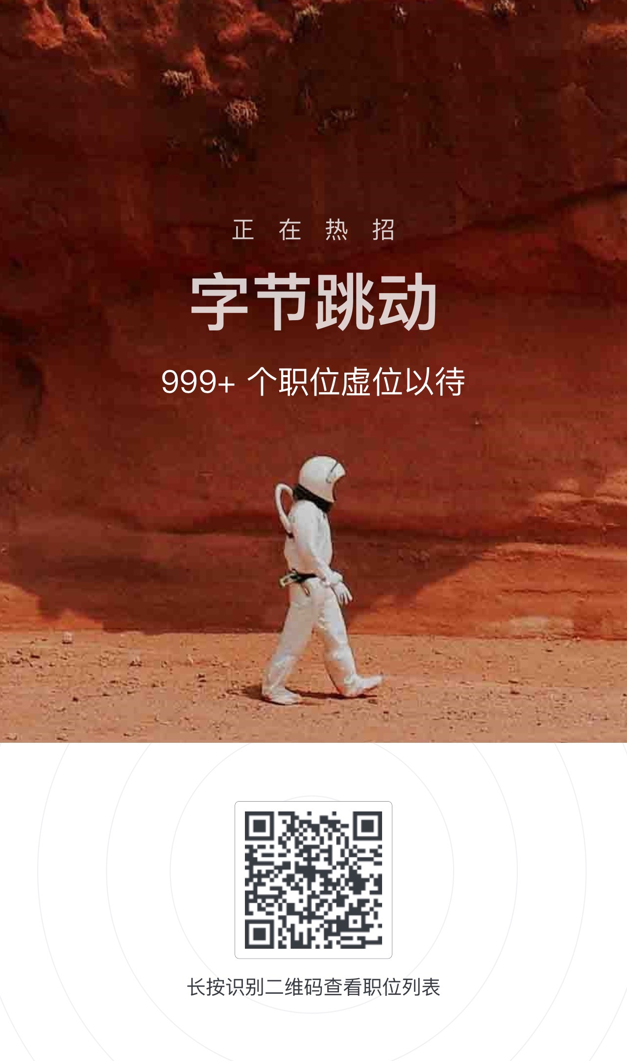 字节跳动大量招募新同学!本次招聘包含 暑期实习和 全职补录 两类岗位,职位类别涵盖研发、产品、运营、设计、市场、 销售、职能/支持、教研教学、 游戏策划等多个方向。
