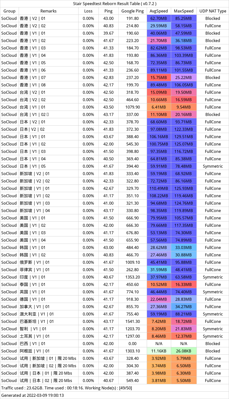 - 游戏加速:部分节点开启UDP转发并支持 NAT 类型 Full Cone;