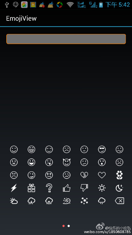 EmojiView 这是一个emoji表情面板库,支持表情导入导出 库中的emojilibrary-lib.rar为测试表情包,暂时封除xml读取,使用json读取提升读取效率。 将提供使用方式 目前首要處理項目。 面臨的問題,一個是imageloader,初始化配置問題,在emojiImageview中會有使用imageloader,或者自己編寫一個讀取圖片的工具。【这个需要额外考虑】 todo:图片读取功能 xml读取方式 性能优化和逻辑优化 流程图绘制 改为adapter方式