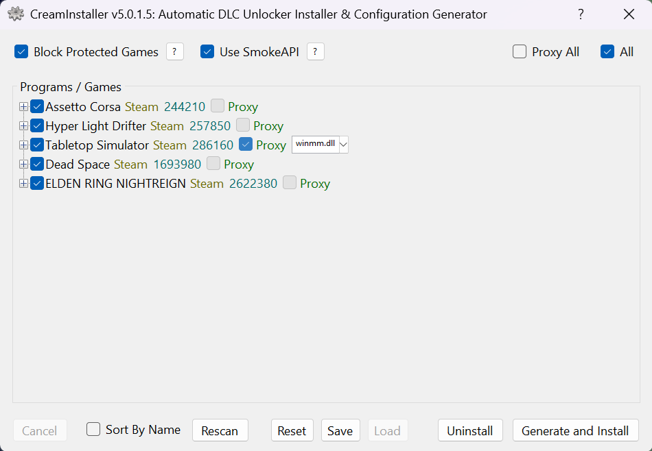 - Automatic uninstallation of DLLs and configurations for CreamAPI, Koaloader, SmokeAPI, ScreamAPI, Uplay R1 Unlocker and Uplay R2 Unlocker.