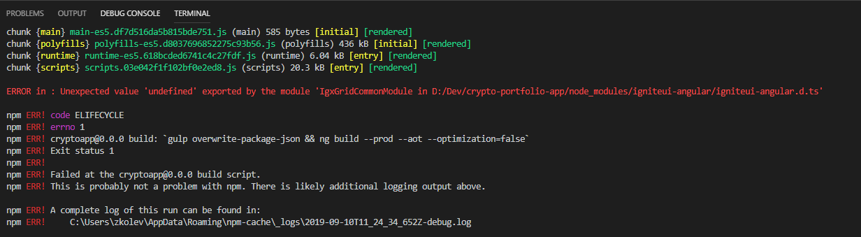 Error in: Unexpected value 'undefined' exported by the module 'IgxGridCommonModule in ...node_modules/igniteui-angular/igniteui-angular.d.ts'