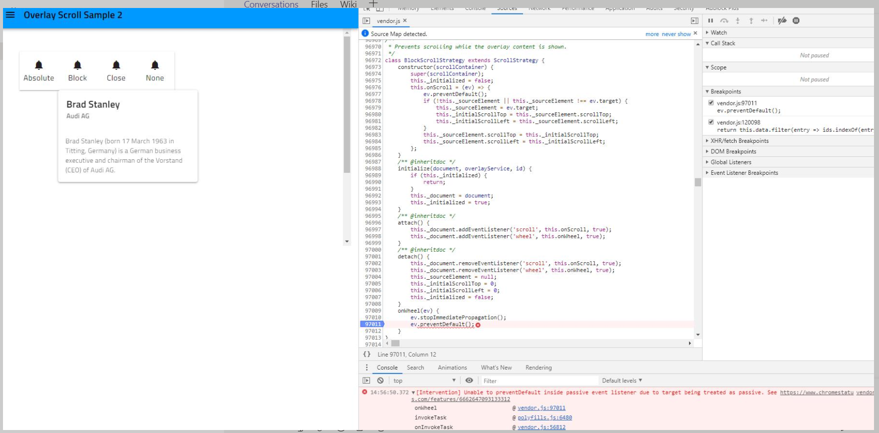Error: Unable to preventDefault inside passive event listener due to the target being treated as passive
