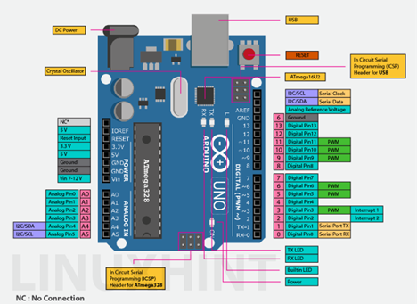 * Pino: Conexões de entrada ou saída do microcontrolador.