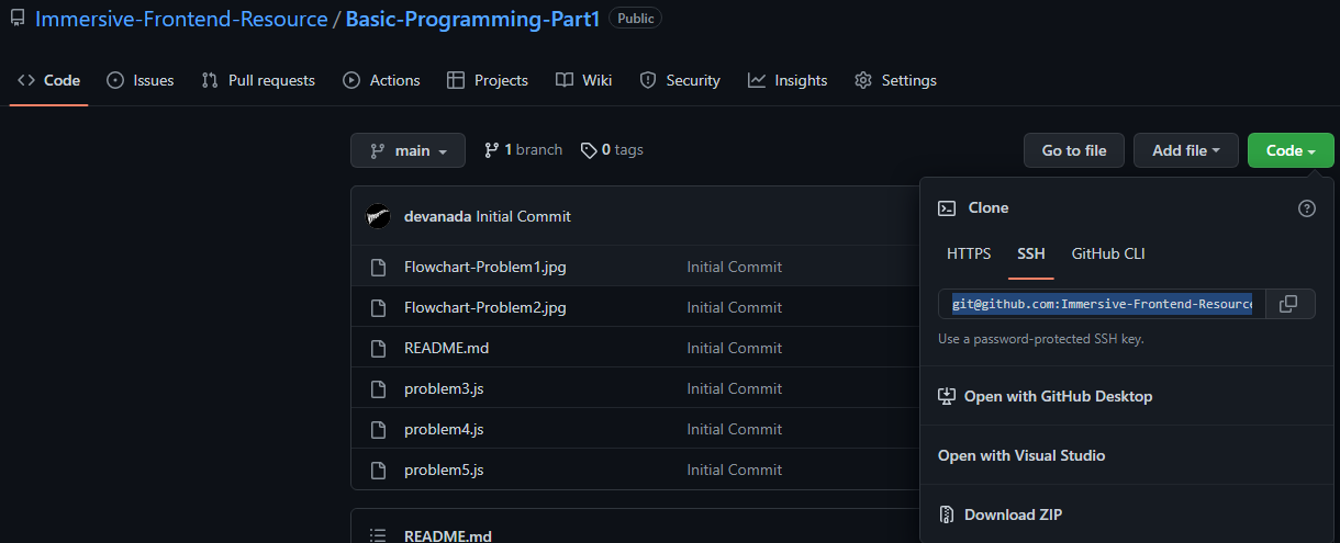 setelah itu buat repository pada github organization kalian dengan format JavaScript-2, lalu copy link SSH seperti gambar dibawah