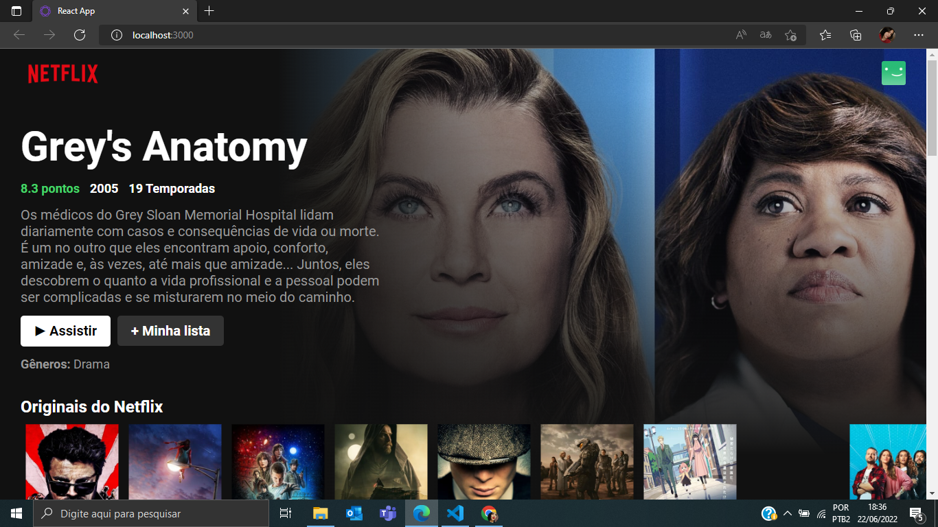 Project consuming Netflix API, using the React library of the JavaScript language. I did this project around October 2021.