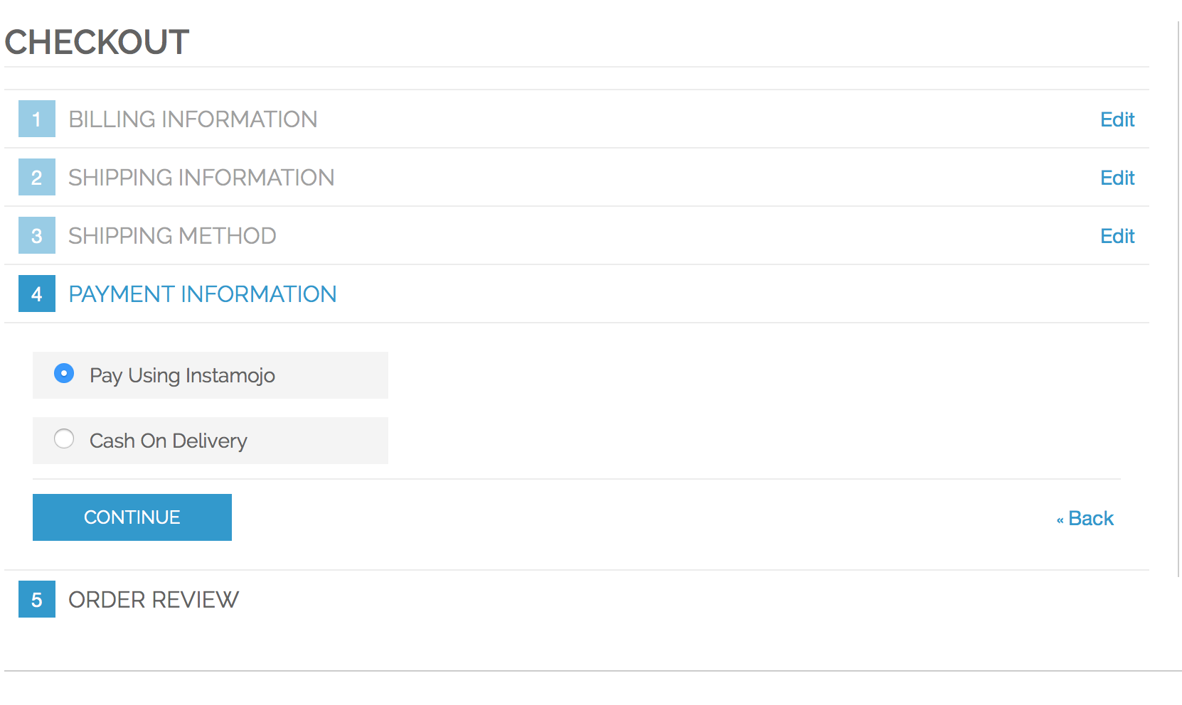 During checkout users can choose the option "Pay using Instamojo".
