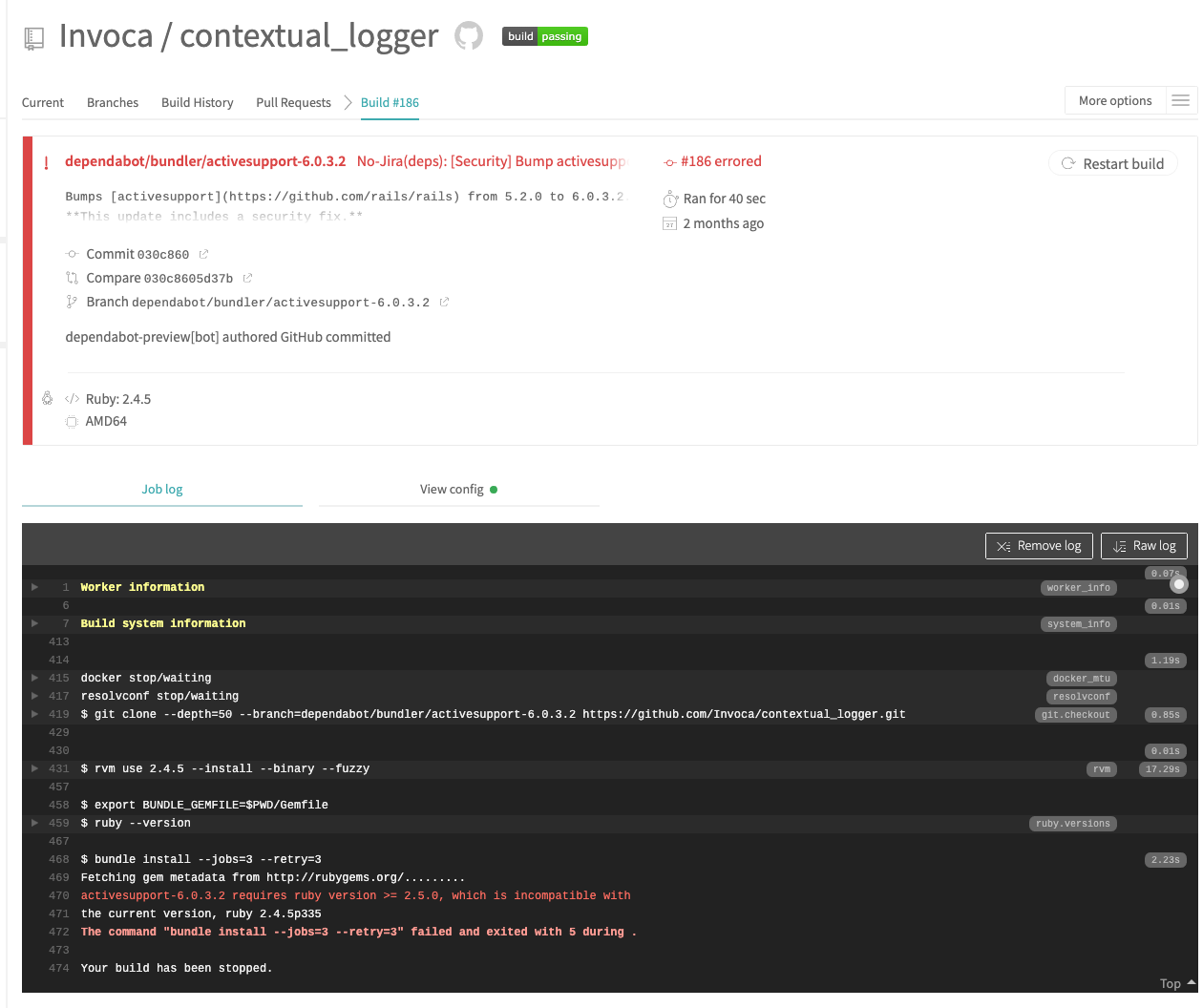 . Could you build out the ruby/active support matrix that’s necessary for travis?