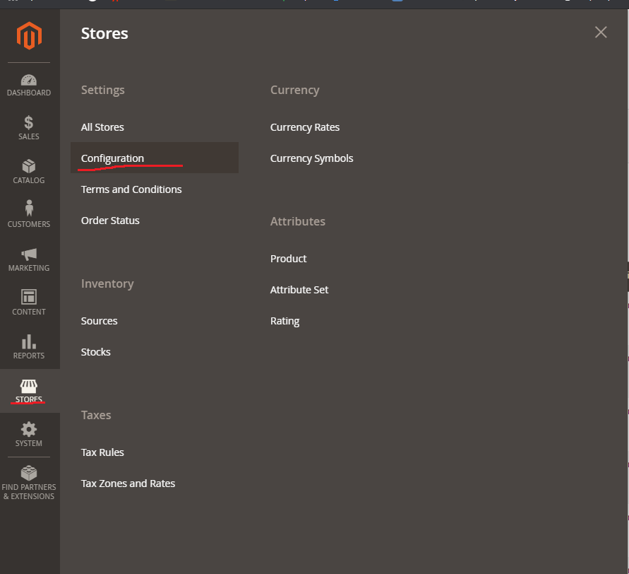 php bin/magento setup:static-content:deploy -f- Перейдите во вкладку Stores->Configuration