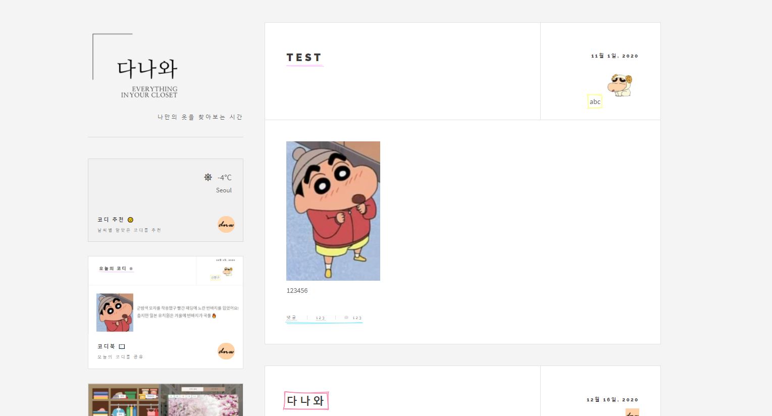 여러분들만에 개성있는 옷을 저장하시고 코디해보시면 좋겠습니다 :)