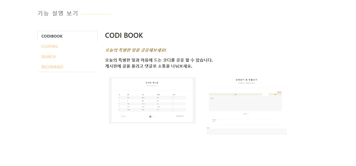 코디북은 여러분들께서 직접 입었던 옷을 하나씩 업로드 하면서 다른사람들과 공유할 수 있도록 고안된 서비스입니다.