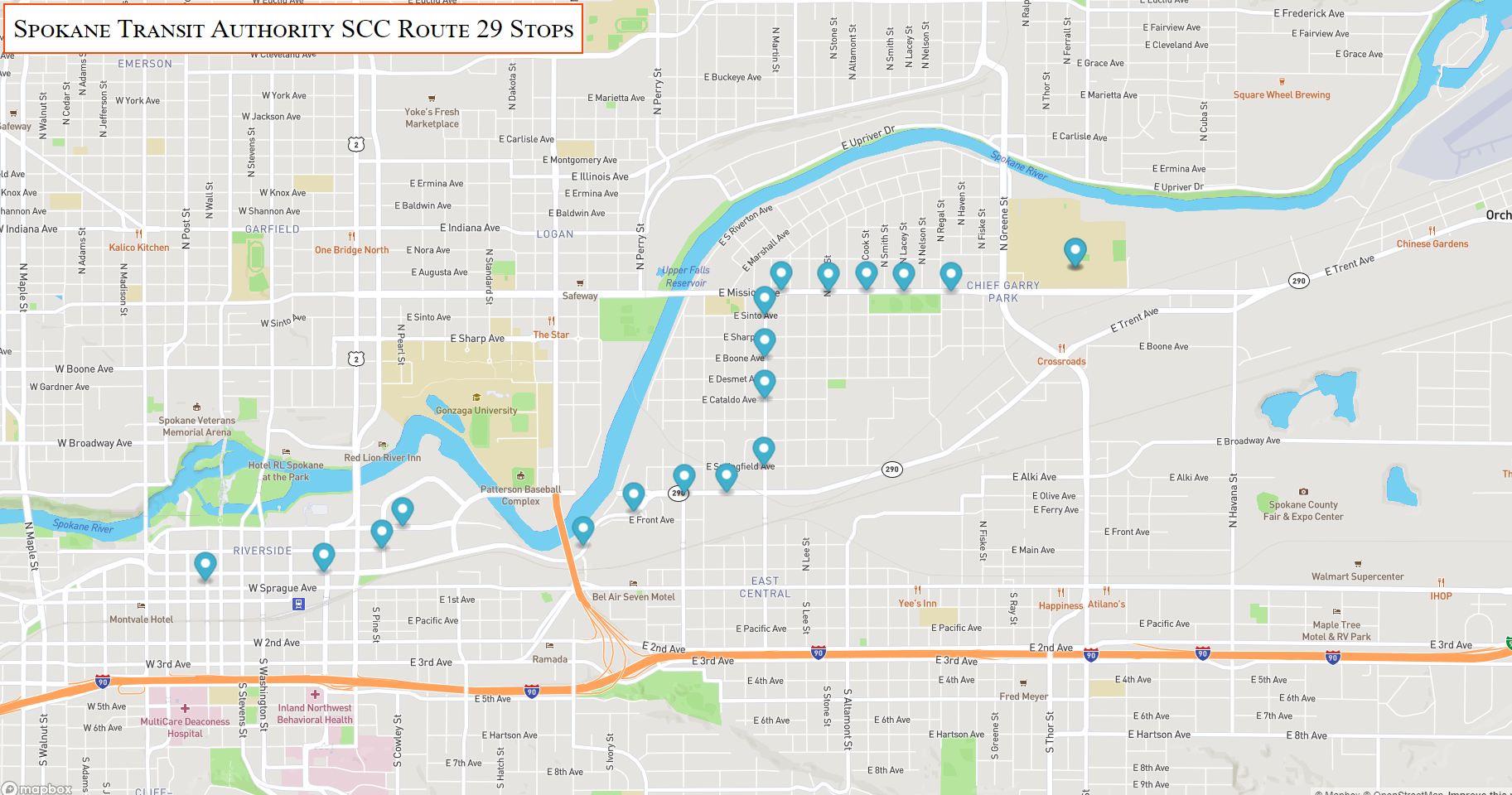 This project is a work in progress. The goal of the project is to show the realtime bus location on the SCC bus route in Spokane, WA. At the moment only the route and stop markers are showing on the map.