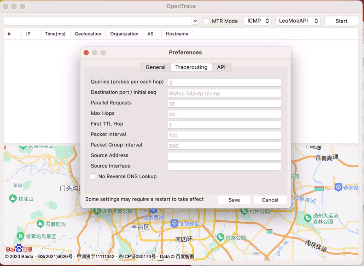 下载并安装 NextTrace V1: 从 这里 下载对应系统架构的 NextTrace,然后将其放置于 OpenTrace 目录下,或者放置到系统 PATH 环境变量包含的目录中;您亦可以放到任意位置并手动指定路径(macOS 用户推荐)。