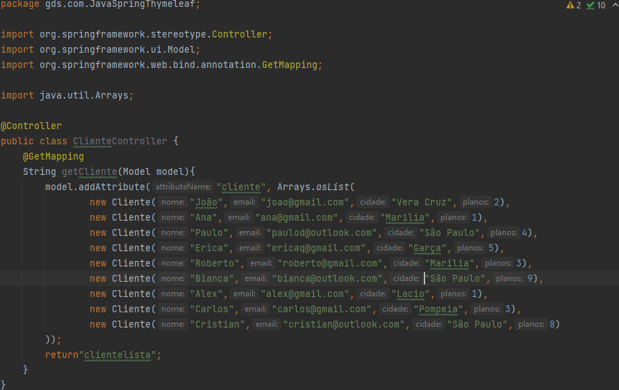 Na pagina html implementamos em suas primeiras linhas os recursos do Bootstrap e do Thymeleaf. Dentro da pagina colocamos uma table com os reursos do thymeleaf, em que os dados irá vim do controller.