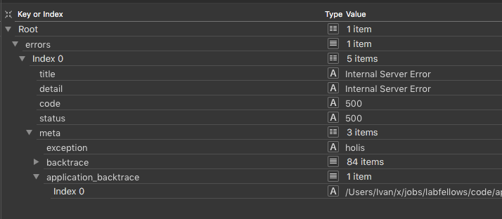 Adds application backtrace, enabled by default when not running on production. Helpful during debugging.