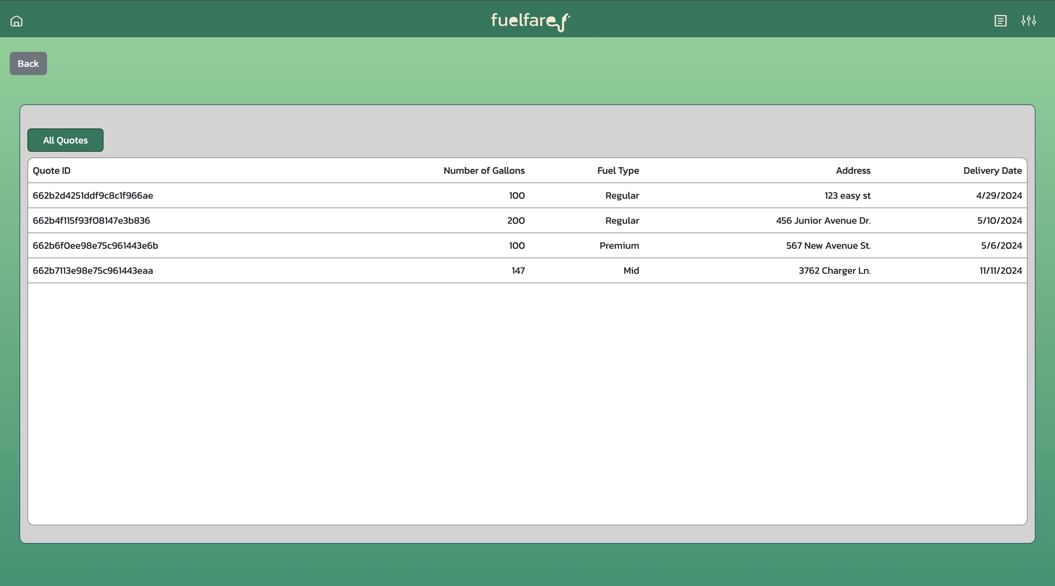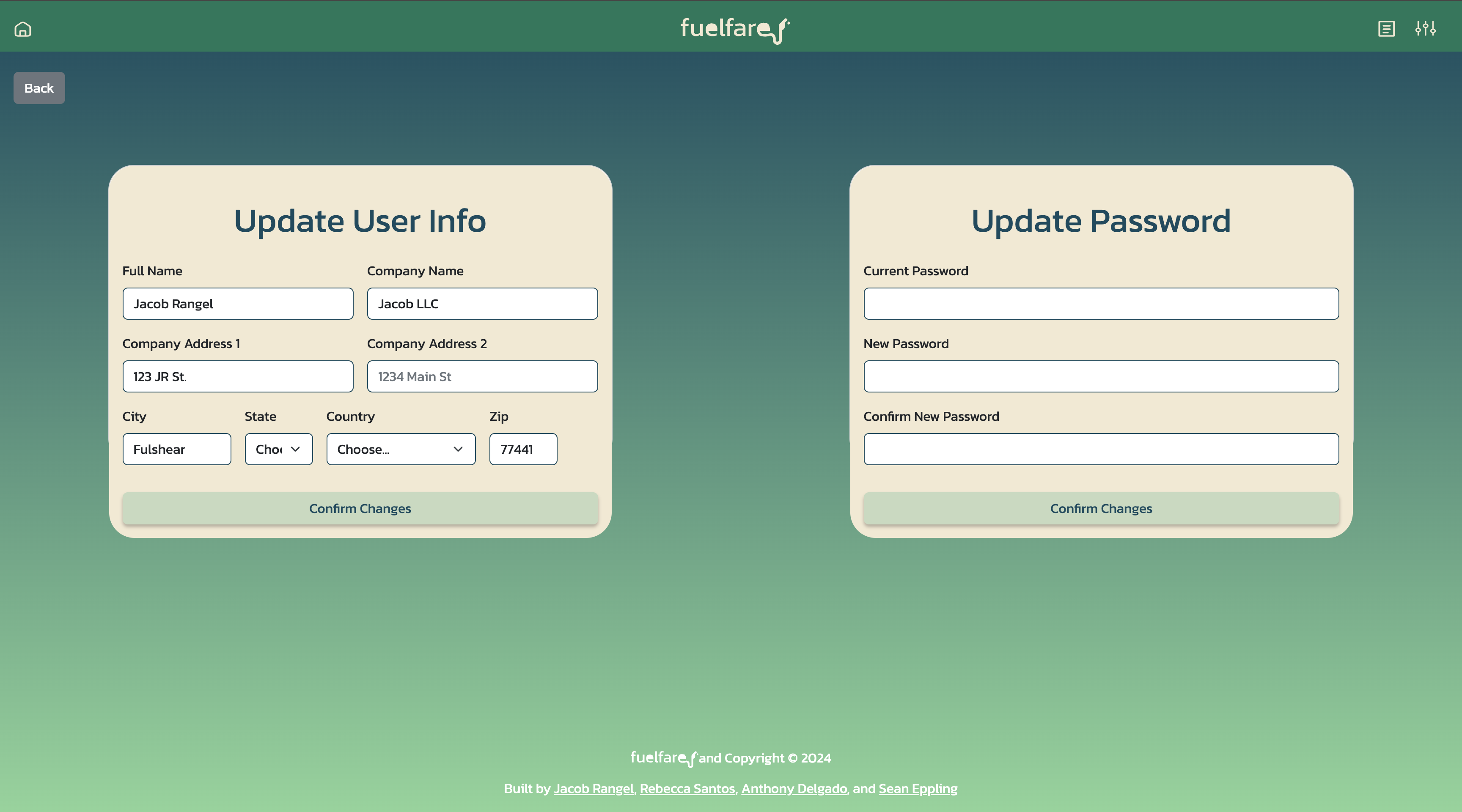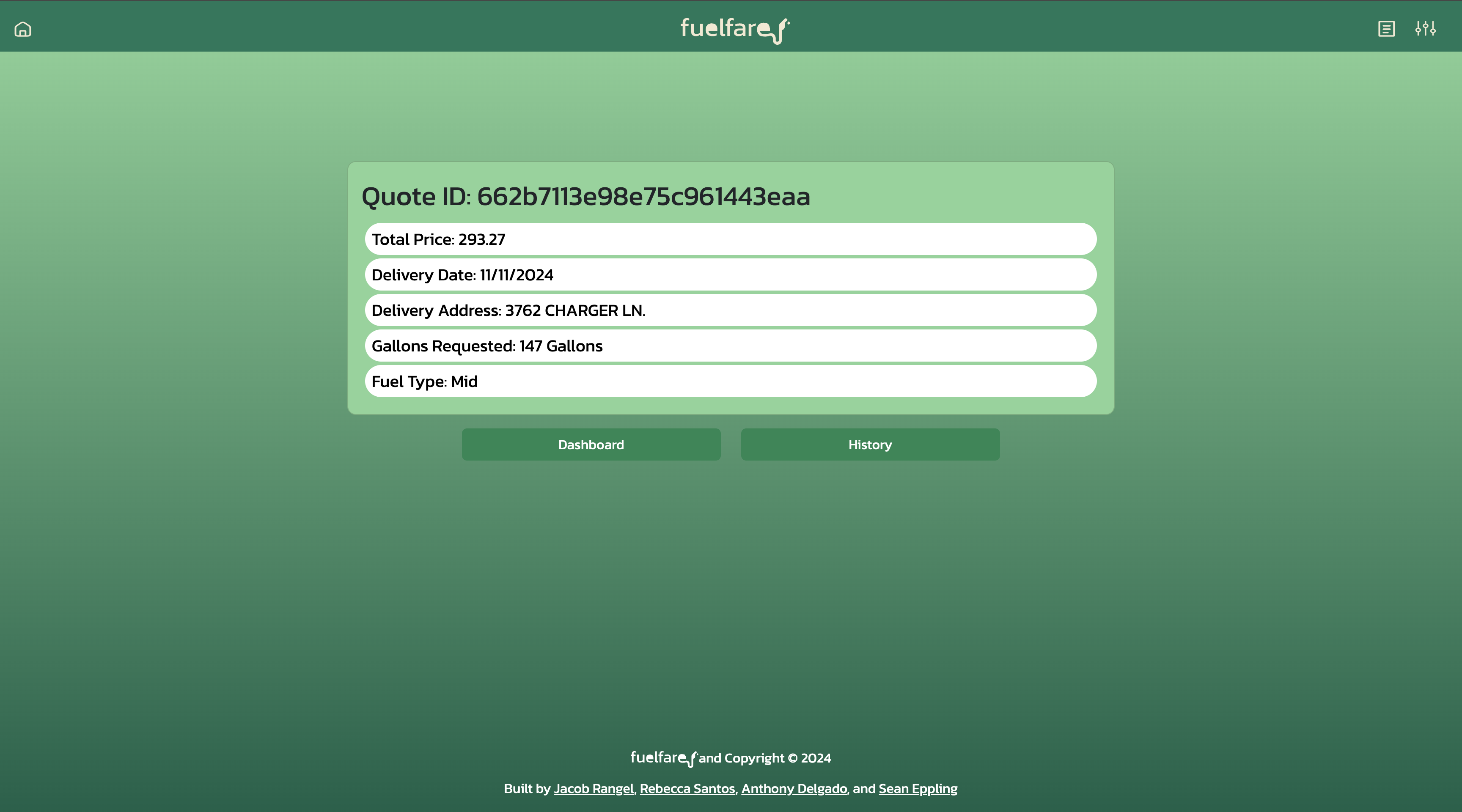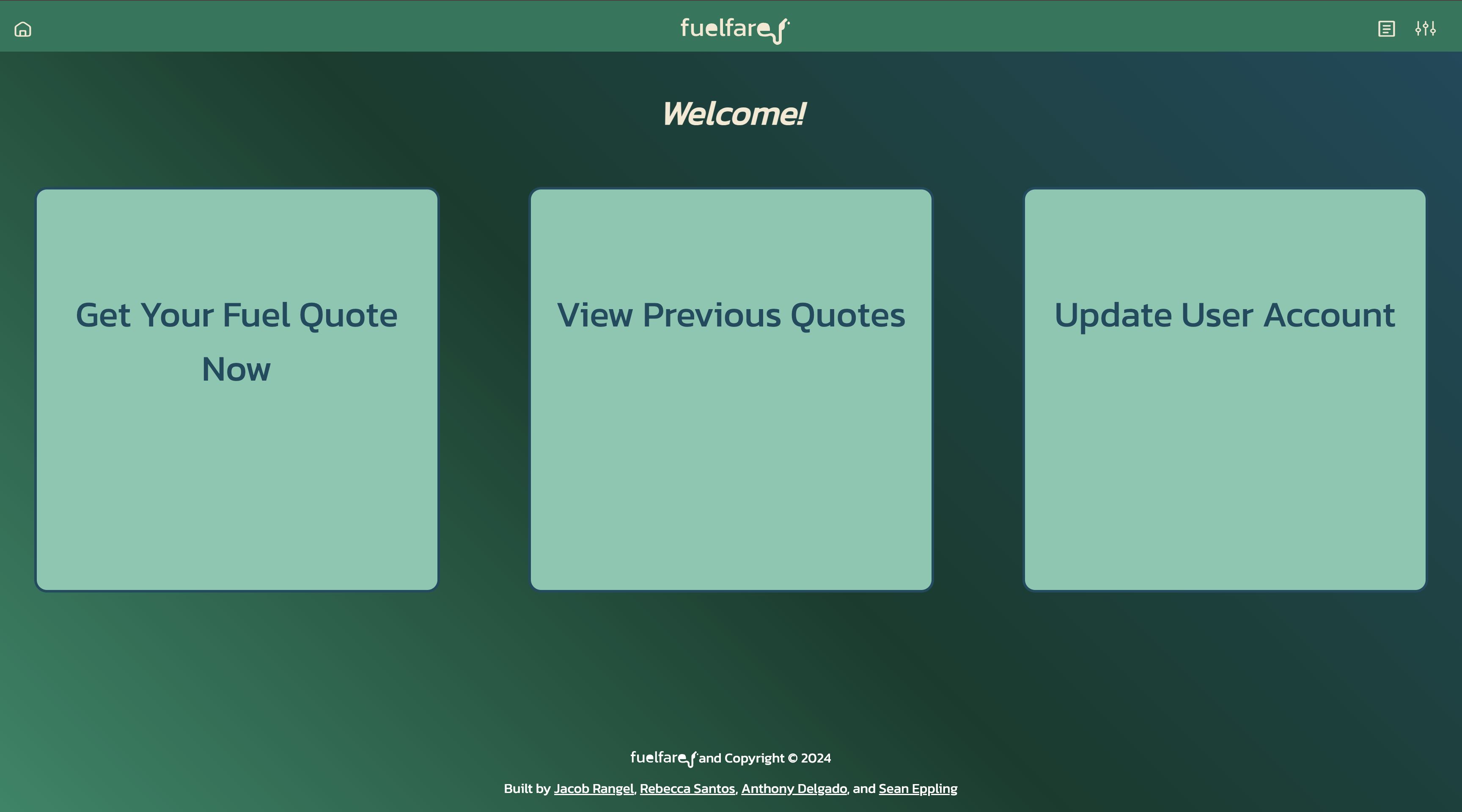 Welcome to the repository for FuelFare! Created at the University of Houston in the COSC 4353 Software Design class. This web application project is a collaboration of Team 1.