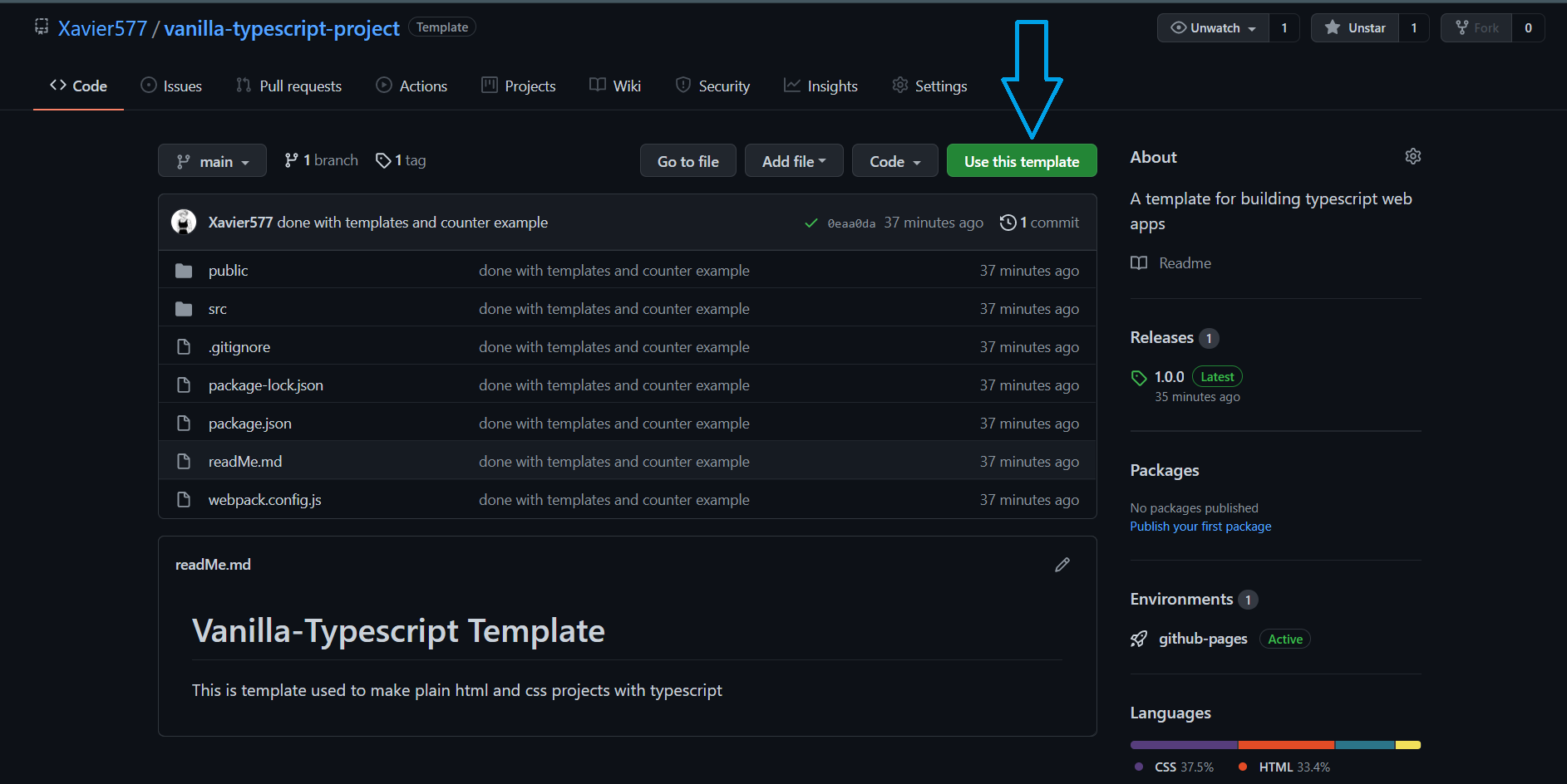 This template uses webpack to compile all typescript code in the src directory into a single javascript bundle. This enable the use of modules in the typescript code. All imports used in the index.ts code would get bundled into a single javascript file (in this case script.js) solving the problem of with tsc --watch command which will compile each imported module seperately to their javascript equivalent.