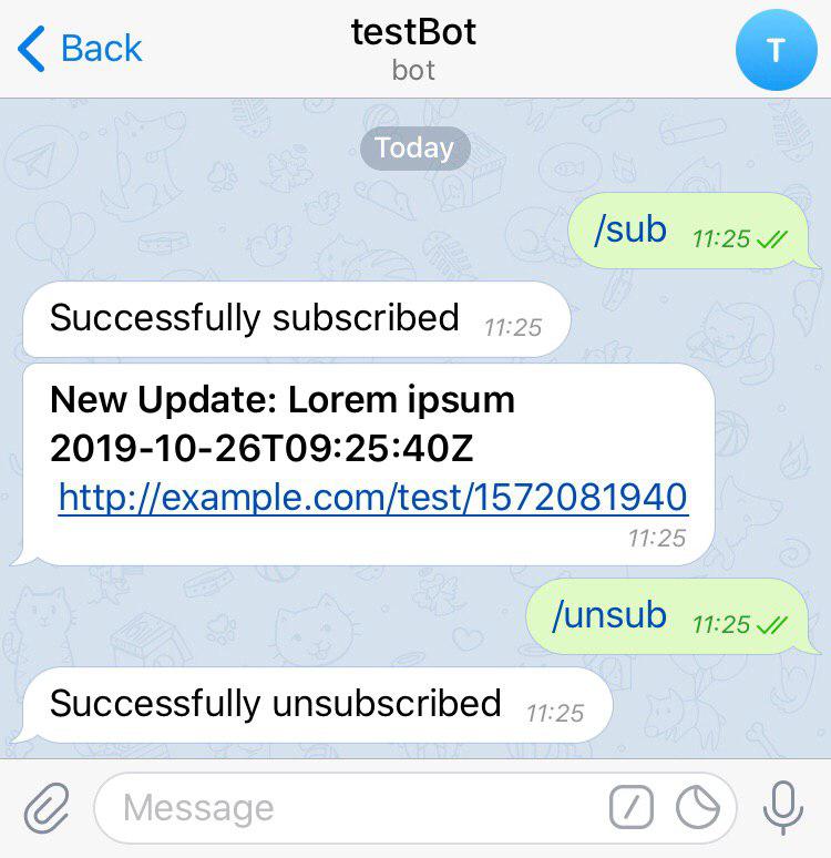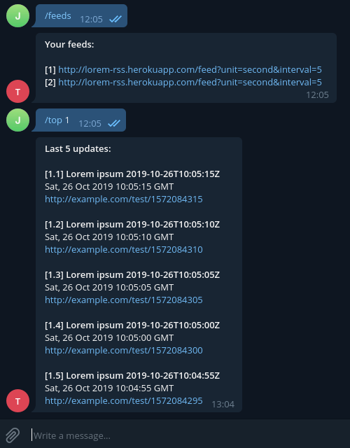 In bot.js, fill in the Bot Token, the Urls of the feeds you want to track and the update Interval in seconds.