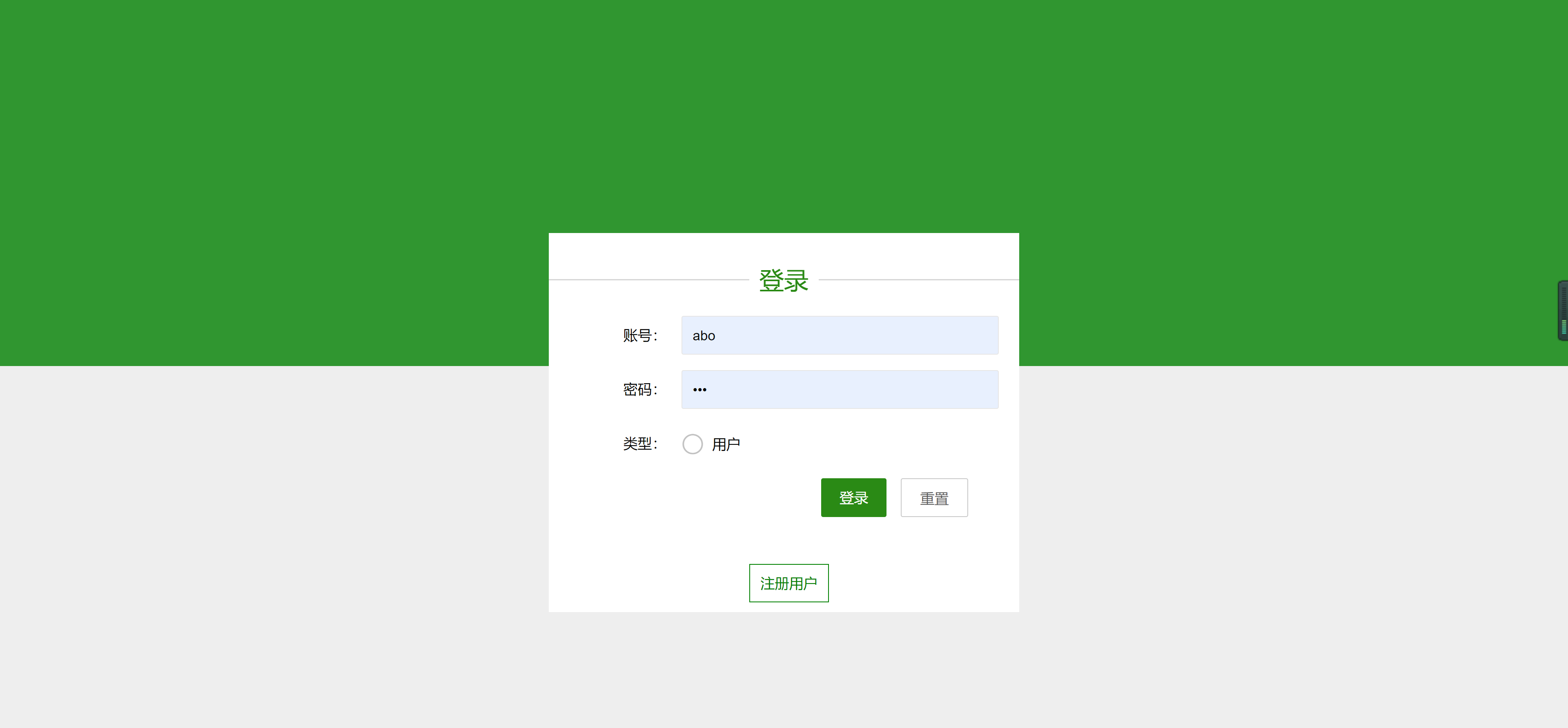 用户: 用户名: user 密码: 123456