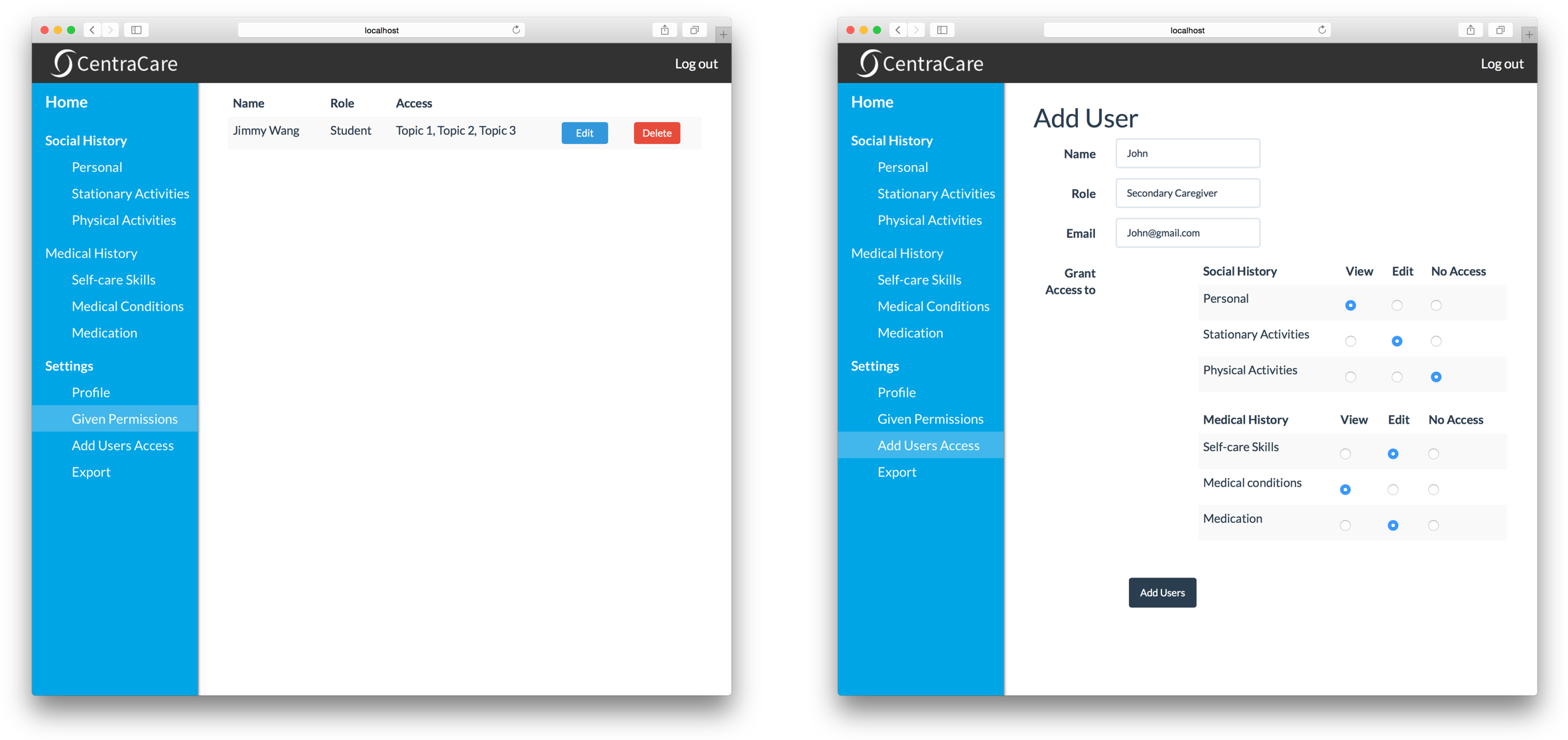 We started with some simple ideas to connect caregivers. They then gradually developed this idea through brainstorming and discussing with different caregivers. After the idea is set, Shawn and Dave started drawing some mock up while Zichen implement it with HTML and CSS. Shawn, Dave, and Mei kept working on refining the idea and collecting data and feedbacks from caregivers, while Zichen started building the front-end with AngularJS and Jimmy started building the backend with Node.js. It was the first time for Zichen and Jimmy to work with a MEAN Stack, but despise the strugling, both of them learnt a lot about the development tools. We finnaly managed to build a prototype before the hacking stops, and spent the rest few hours resting and practicing pitching.