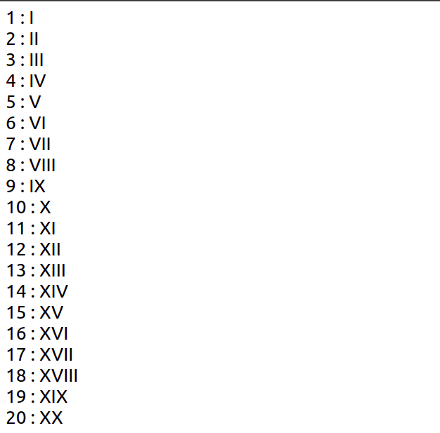 A roman encoder where a function takes a positive integer as its parameter as specified in the for loop and returns a string containing the Roman Numeral representation of the interger(s).