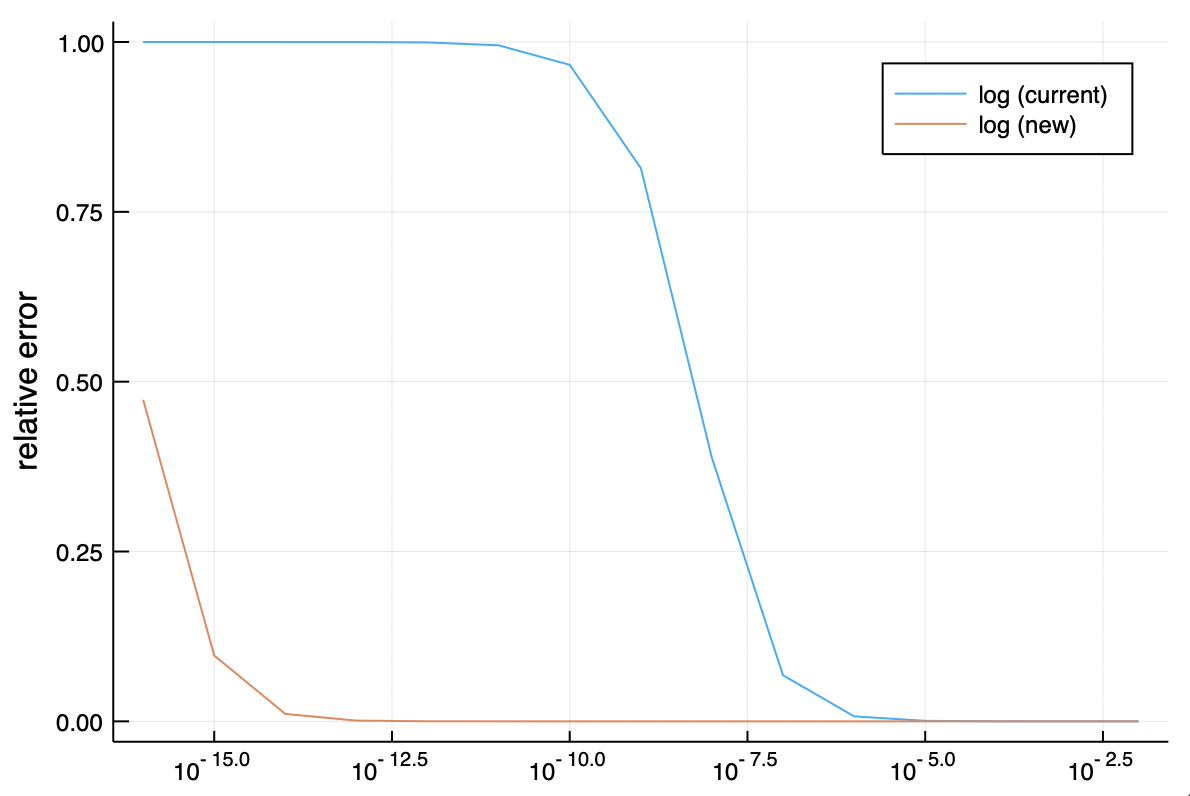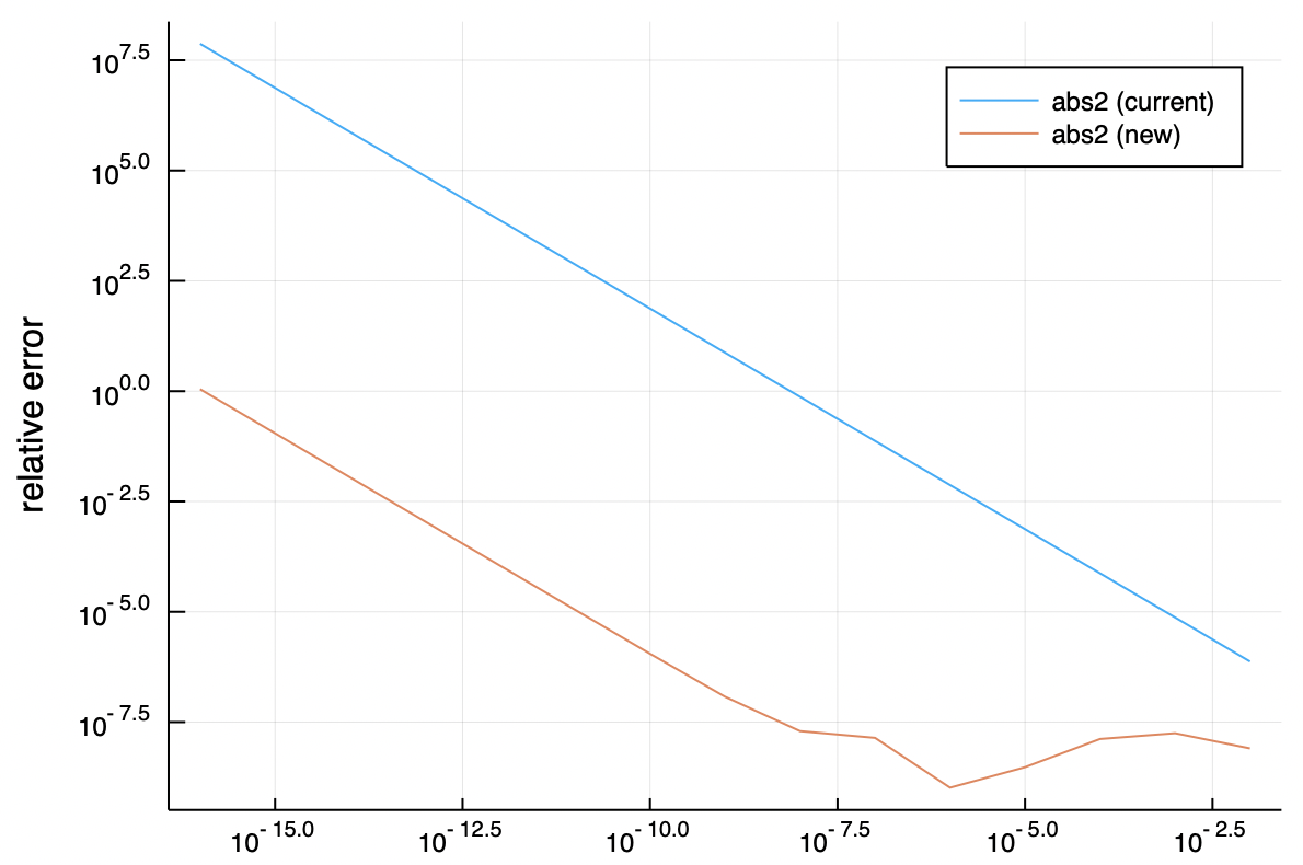 logandabs2around zero, seeWhere "new" uses the square of the relative step size for the absolute step size. However, Pareto improvements only exist in books so some functions can lose on such a change.