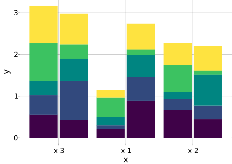 barplot!(ax, tbl.x, tbl.y, dodge = tbl.grp_dodge, stack = tbl.grp_stack, color = tbl.grp_stack)