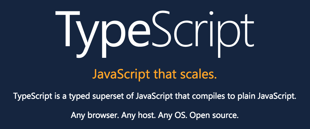 - JavaScript 대체 언어의 하나로써 JavaScript(ES5)의 Superset(상위확장)이다. C#의 창시자인 덴마크 출신 소프트웨어 엔지니어 Anders Hejlsberg(아네르스 하일스베르)가 개발을 주도한 TypeScript는 Microsoft에서 2012년 발표한 오픈소스로, 정적 타이핑을 지원하며 ES6(ECMAScript 2015)의 클래스, 모듈 등과 ES7의 Decorator 등을 지원한다.