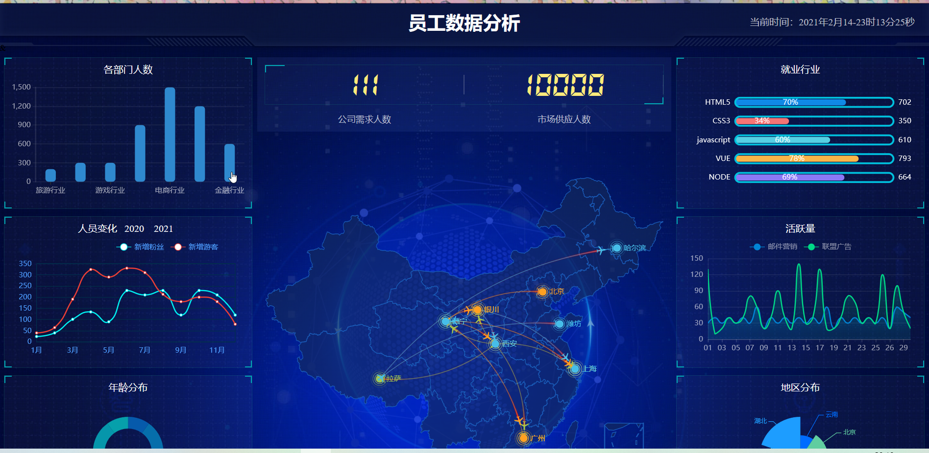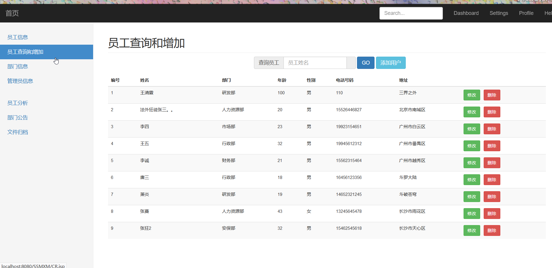 enterprisemanagementsystem 企业管理系统,基于SSM+JSP框架的简单项目 使用技术: 后端框架:Spring,SpringMVC,Mybatis 数据库:MySQL 前端框架:JQuery,BootStrap,Echarts,three 数据交互:AJAX/JSON 动态模板引擎:JSP 本地运行的步骤: 1,在本地数据库中新建managementsystem库 2,找到项目的EnterpriseManagementSystem.sql文件通过source sql文件名 的方式引入到库中 3,找到src\main\resources目录下的Spring_WQL.xml文件,修改连接的数据库信息 ...... 运行图片: 登录界面: 员工信息界面: 修改的模态框: 员工分析: 员工查询和增加界面: 部门界面: