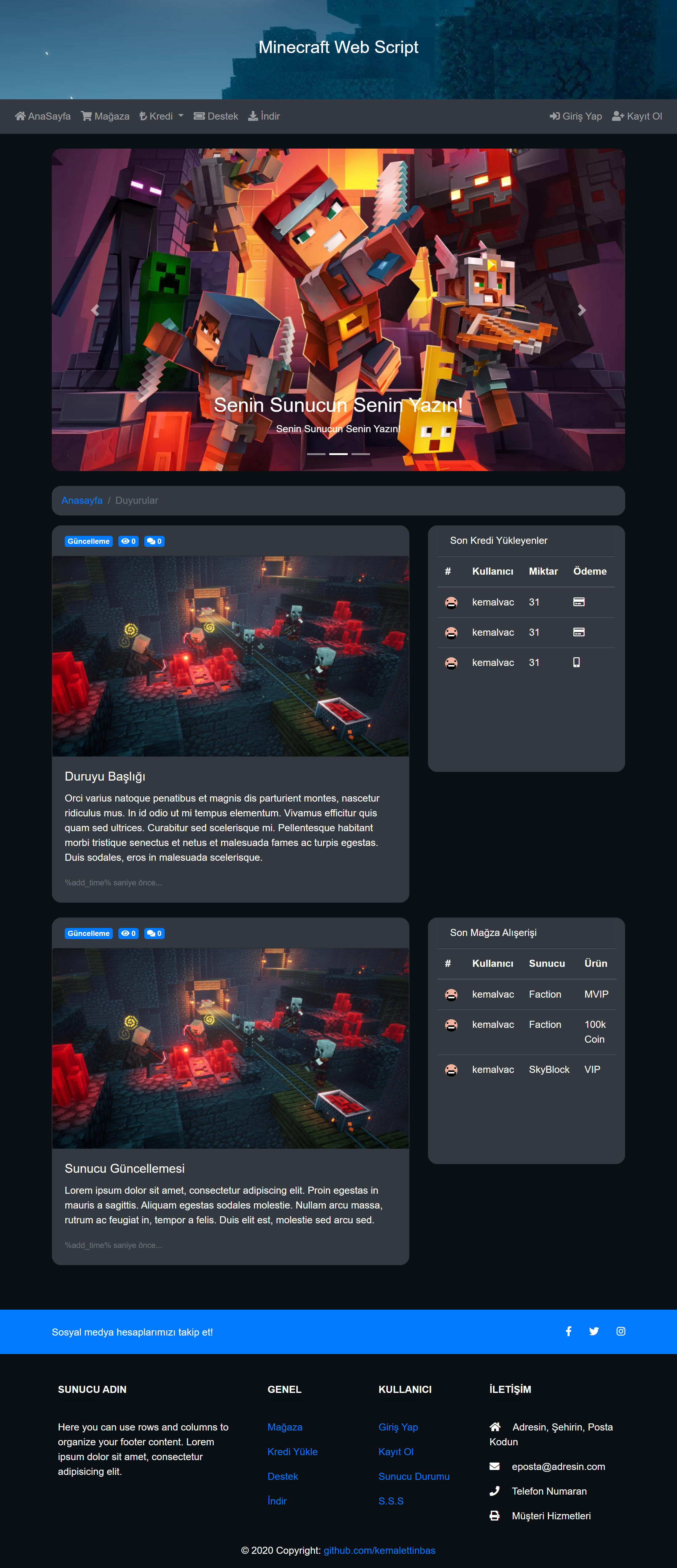 Sitenin önizlenmesi bu şekildedir hala geliştirilmeye devam etmektedir sadece front-end olup yakında back-end eklenip kullanışlı ve güzel bir script yapacağız allah nasip aderse!