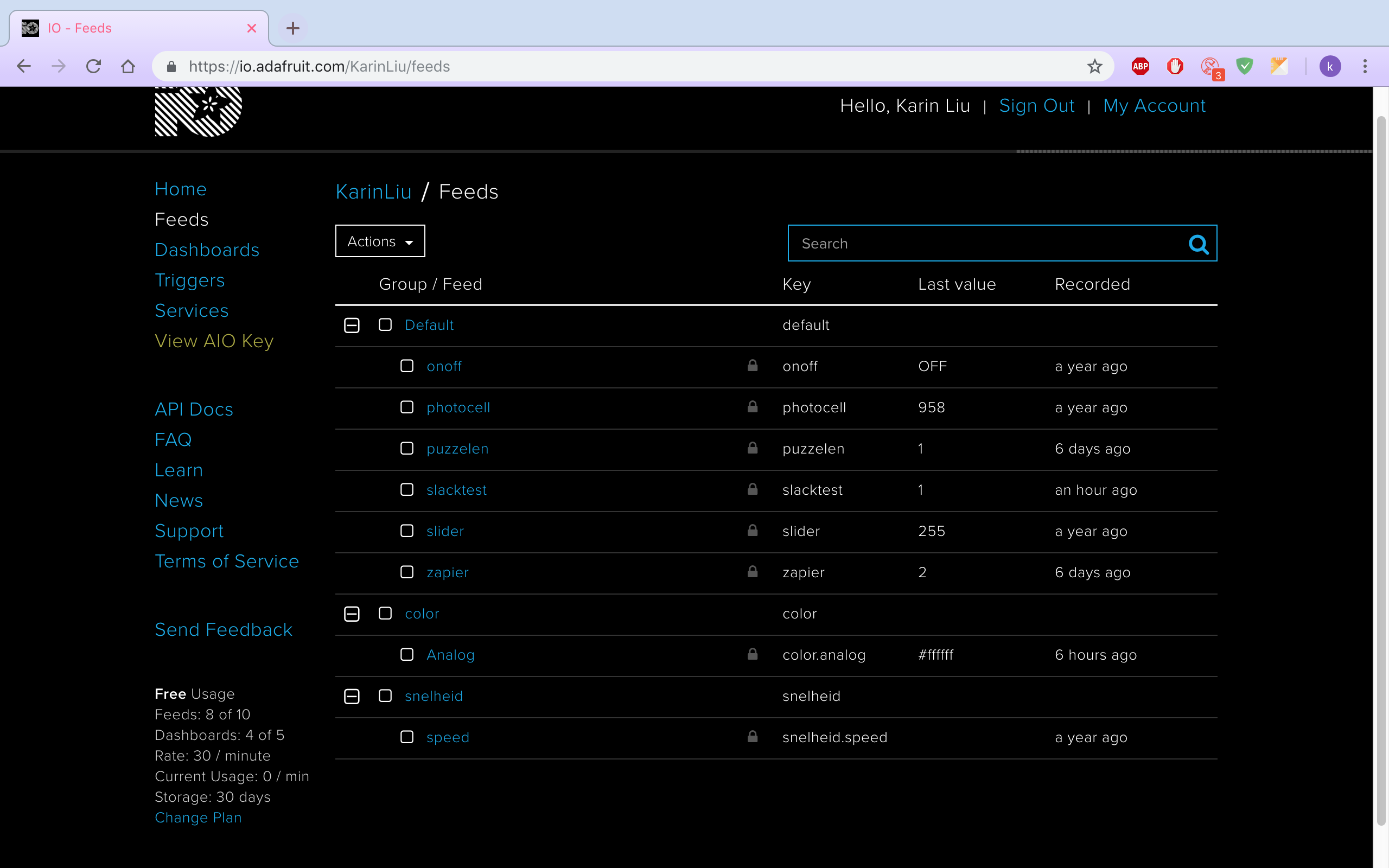 If you go to Adafruit and you click on your created feed, you can see that your Zapier just sended the value 1.