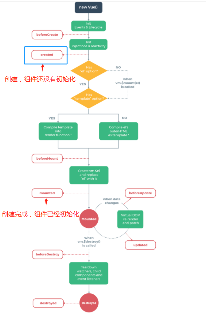 new一个vue对象的时候可以设置它的属性,其中最重要的包括三个