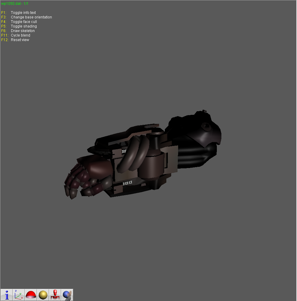wp1050 seems like a good bet for the left arm, but I have never played the game. I don't know where the texture is for this one, most probably in pl1050 or pl1051. They should be exported with the main model. |