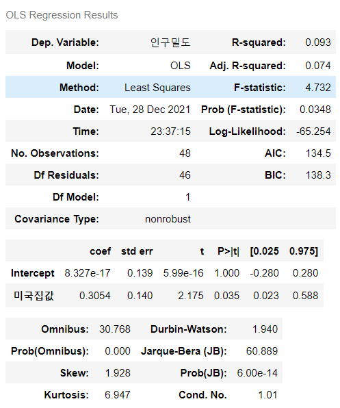 미국의 경우에는 인구 밀도가 크지 않아 수요가 부족함에 따른 집값 상승이 아니기 때문에 인구 밀도와 집값 사이에 큰 상관관계가 없음