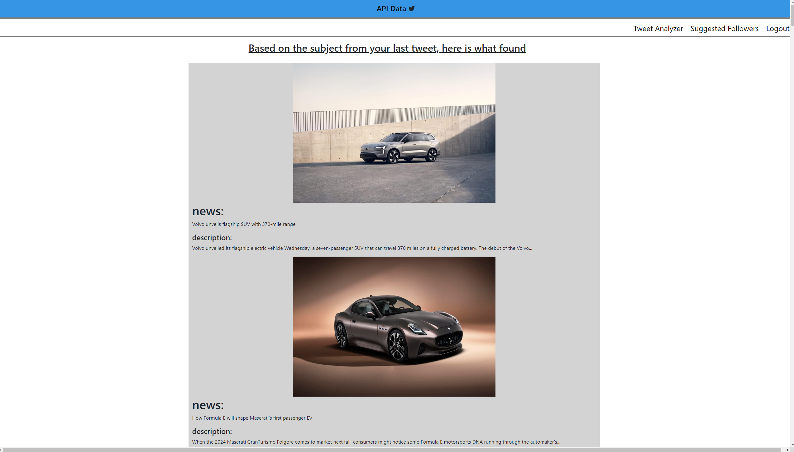 Figure 3-- The image below is the page the API returns data based on subject of the tweet