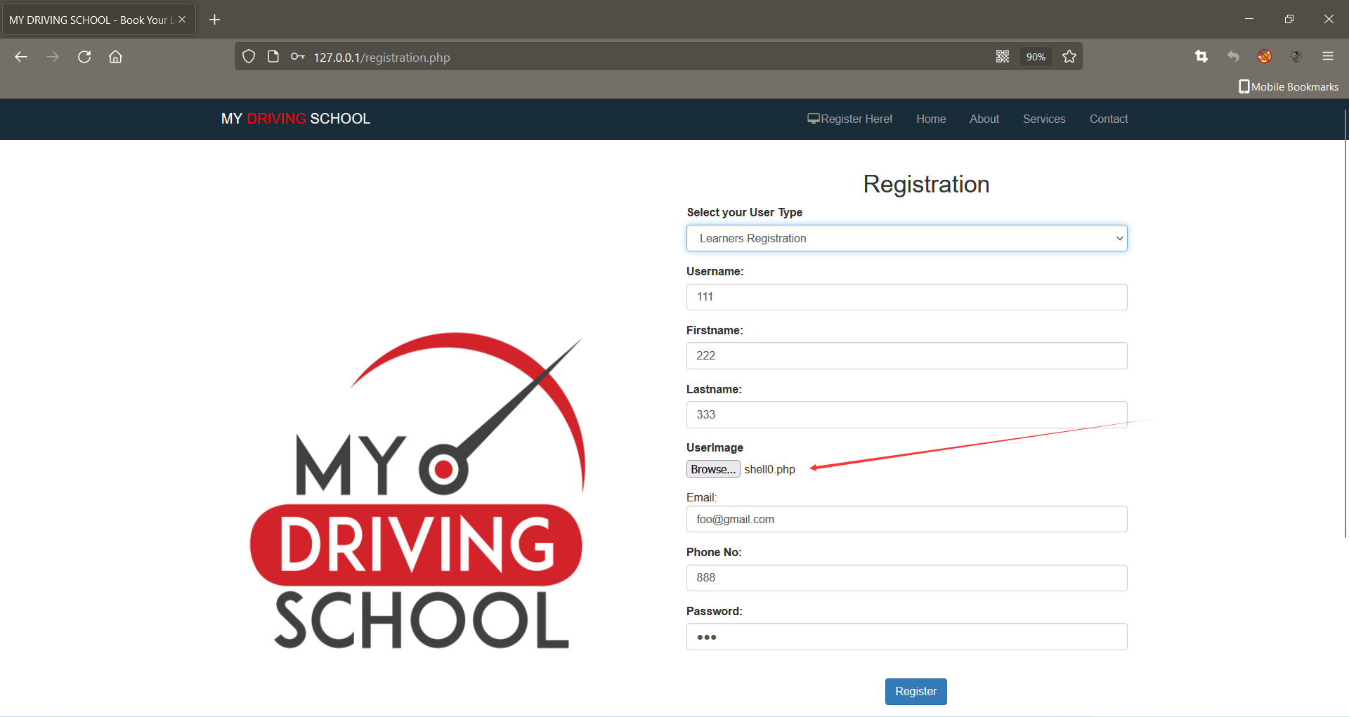 Online Driving School Project In PHP Arbitrary File Upload And RCE