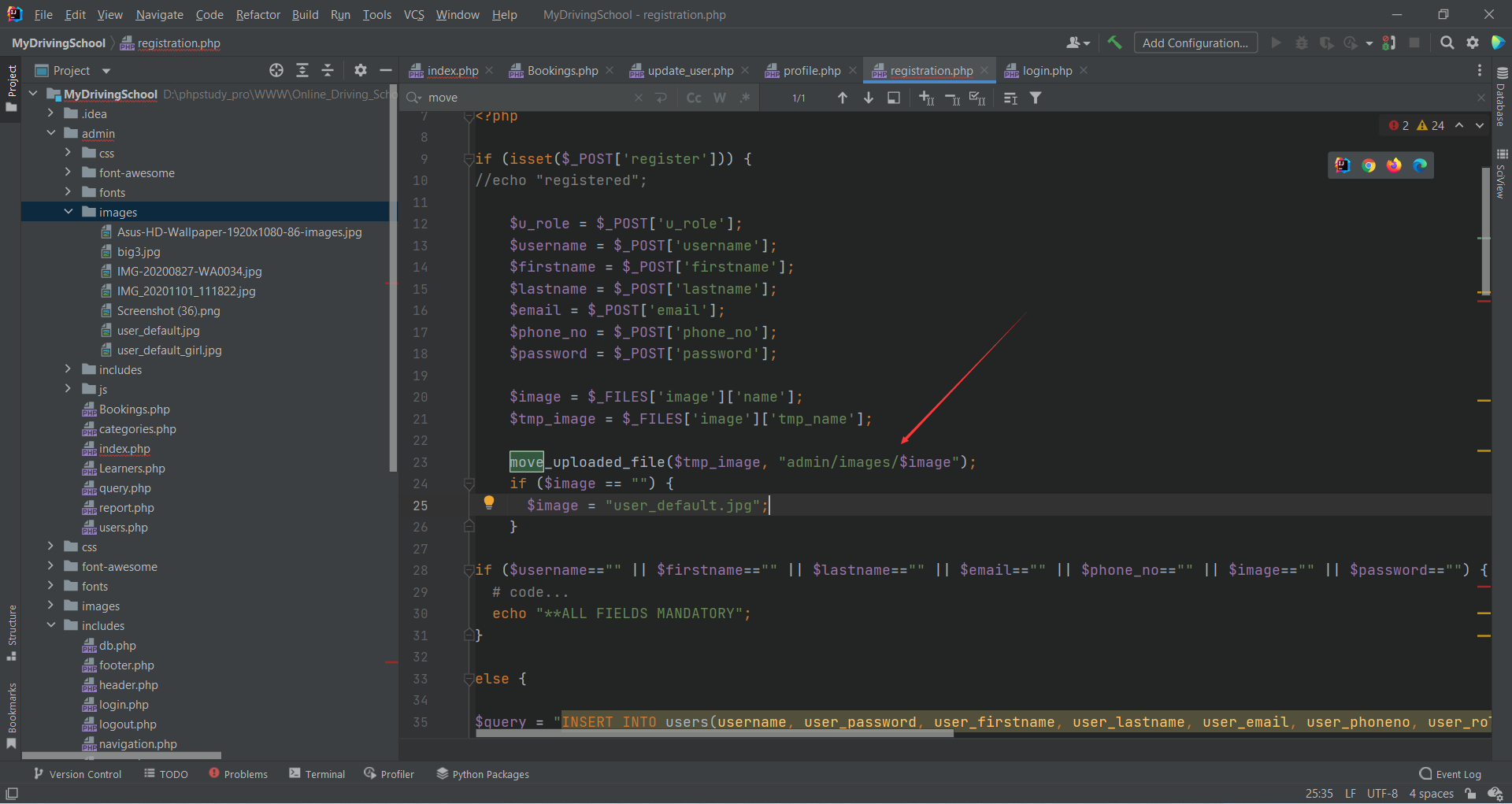 in /registration.php, an attacker can upload an arbitrary file