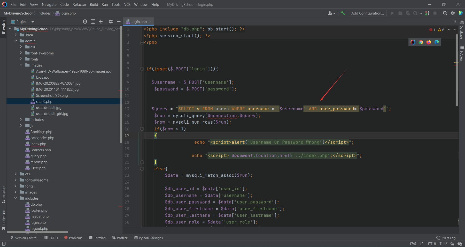 Online Driving School Project In PHP Sql Injection