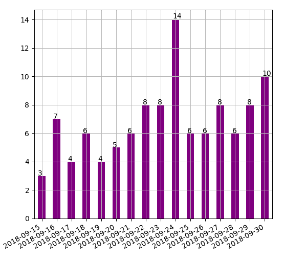 - plots a bar graph of occurrences, f.e.:
