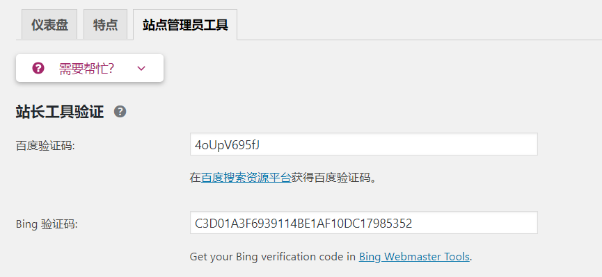 - Baidu站长认证——方法:登录百度站长工具,选择通过html的验证方法,将其验证码贴入Yoast SEO,完成验证后提交sitemap