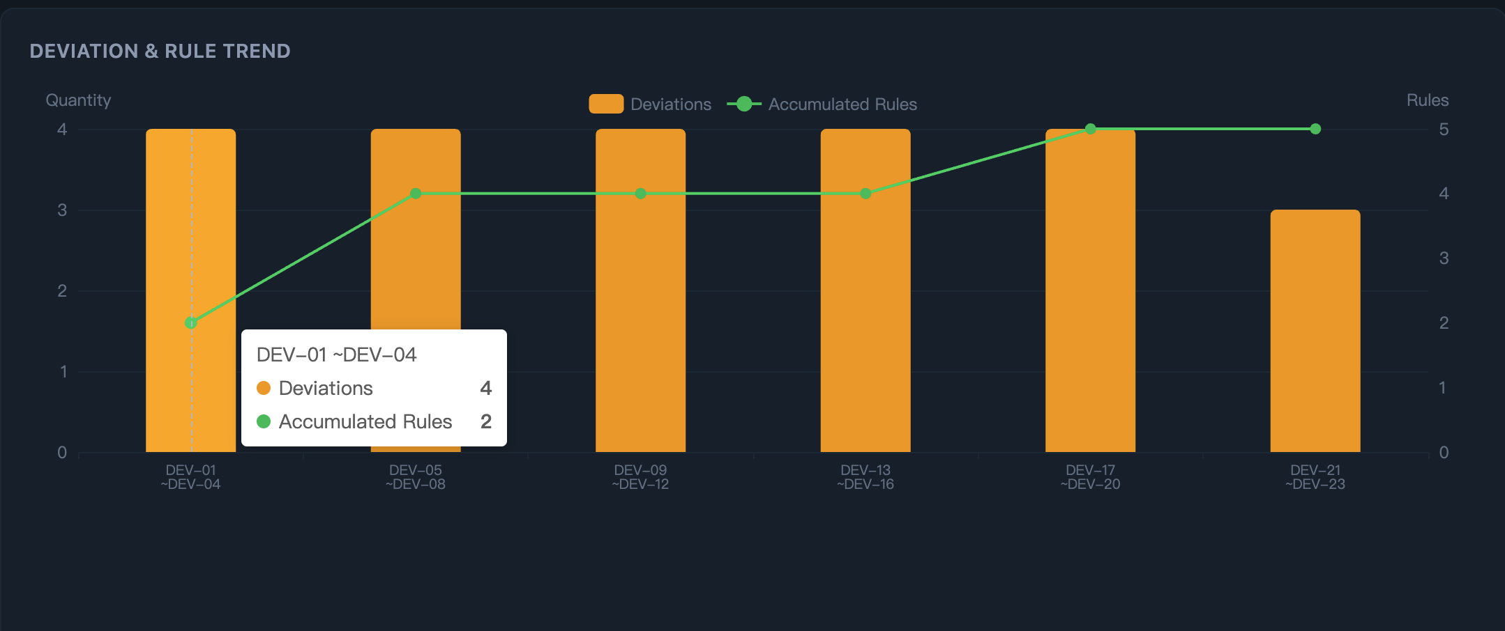 | Deviation & rule trend over time | Watch deviations drop as rules accumulate |