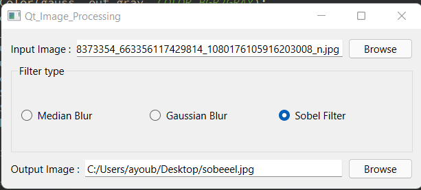 - The application must be able to save the output image (*.jpg, *.png,*.bmp)