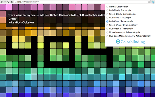 An extension for Google Chrome (and Chromium) that simulates the website as a color vision impaired person would see. So you, as a developer, can adjust the colors for their accessibility.