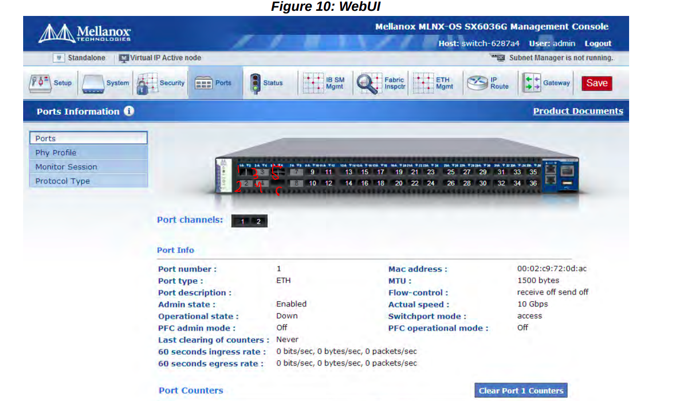 Find your switch interface number from the User Manual. For example, in my switch this is the manual https://www.mellanox.com/related-docs/prod_management_software/MLNX-OS_ETH_v3_6_3508_UM.pdf and I see that I am using ethernet 5.