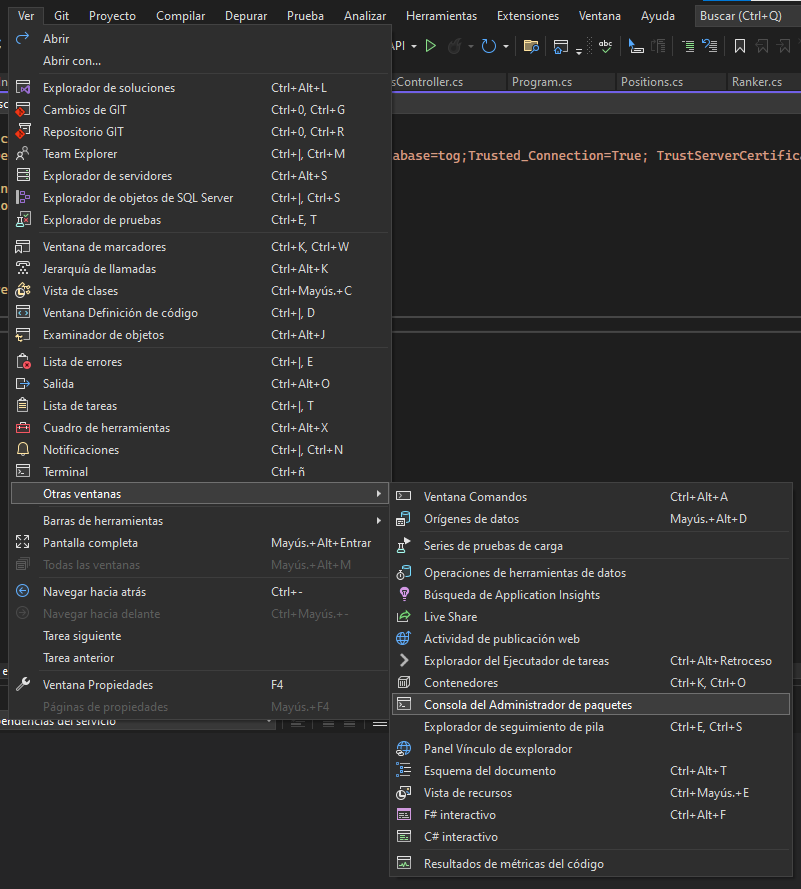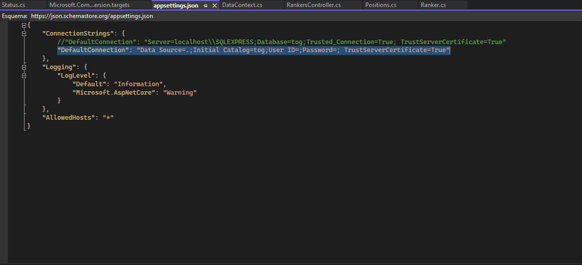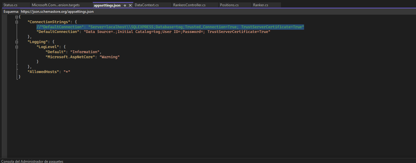 API to obtain the data of the Tower of God Rankers made with .NET CORE, using entity framework and SQL Server.