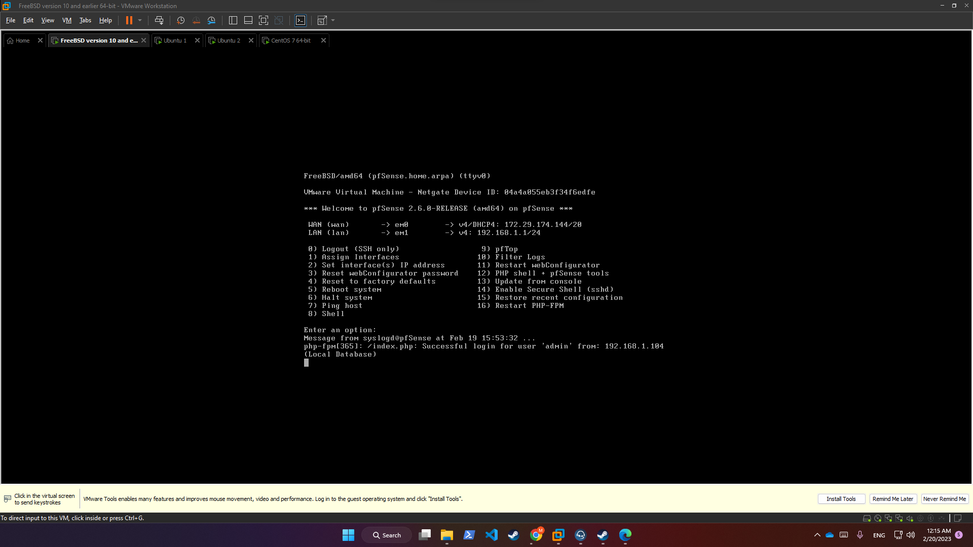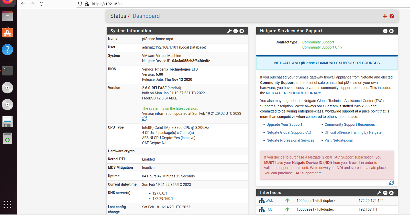 WAN(eM0) DHCP4 : 172.29.174.144/20LAN(eM1) GW : 192.168.1.1/24