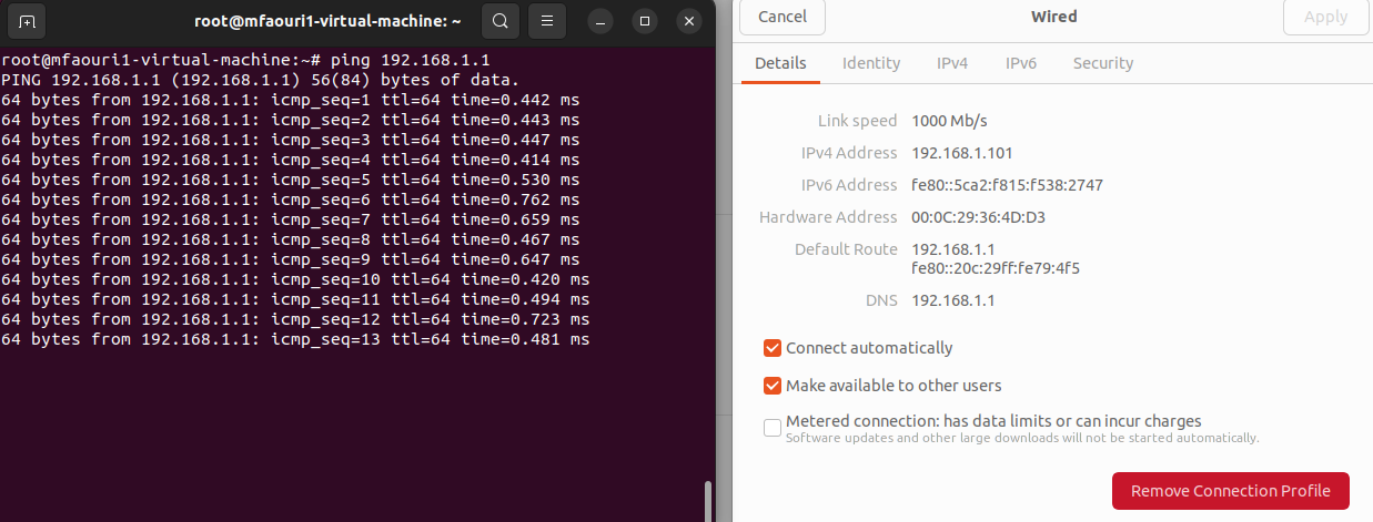 ubuntuserver1 with ipv4192.168.1.100pinging192.168.1.1